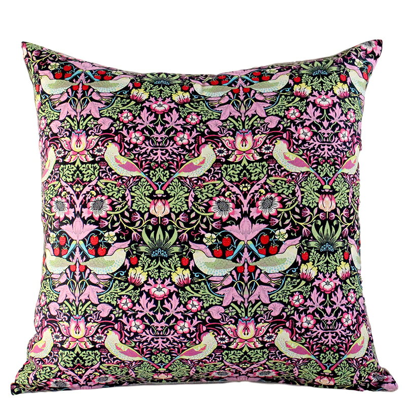クッションカバー45x45cm コットン/麻 ウィリアムモリス/ストロベリーシーフ(William Morris Strawberry Thief)ピンクpinkコットン100%日本縫製