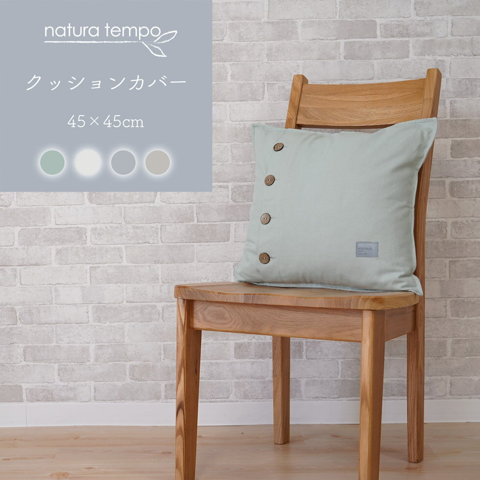 naturatempo クッションカバー 商品名 naturatempo クッションカバー 表記サイズ 45cm×45cm 色展開 グリーン、アイボリー、グレー、モカ 素材 綿100% 製造国 インドネシア ご利用時の注意点 ・家庭での洗濯禁止 ・塩素系及び酸素系漂白剤の使用禁止 ・タンブル乾燥禁止 ・底面温度150 ℃を限度としてアイロン仕上げができる ・パークロロエチレン及び石油系溶剤による弱い ドライクリーニングができる ・ウエットクリーニング禁止 ・アイロンをかける際は当て布を使用してくださいナチュラル素材のシンプルデザイン 綿100%で優しくナチュラルな質感 natura tempo クッションカバー 【45cm×45cm】 シンプルな無地デザインで、さらっとした肌触りのクッションカバー。 ナチュラルテイストのインテリアを選ぶなら、綿100%の『natura tempo シリーズ』がお勧めです。 4種類の色からお選びいただけ、お客様それぞれのお部屋のスタイルにあったものをご選択いただけます。どの色も季節問わず年中お使いいただけるデザインです。お部屋のイメージチェンジに是非こちらのnatura tempoのクッションカバーをご利用ください! RECOMMEND! この商品の関連アイテム一覧 【幅140cm×丈180cm】natura tempo ハトメ間仕切りカーテン 2,490円 【144×45/60cm】natura tempo カフェカーテン 1,580円 【86×150cm】natura tempo のれん 1,650円 【45×30cm】natura tempo 腰当てカバー 770円 【M.Lサイズ】natura tempo スリッパ 1,100円 デザインだけでなく使い勝手も抜群! 天然素材仕様のnaturatempo(ナチュラテンポ)のクッションカバー。綿100%だから優しい肌触りで、ナチュラルな質感が特徴的です。生地は丈夫でハリがあり、座った際の腰当て以外にも枕代わりになど、色々な使い方でリラックスでき、様々なシーンで活躍します。サイズ感も座った時に邪魔になりすぎず、くつろぐのにベストな大きさです。3つのボタンがアクセントとなり、クッションの出し入れも簡単に行うことができます。 商品名 natura tempo クッションカバー 表記サイズ 45cm×45cm 素材 綿100% 製造国 インドネシア 色展開 グリーン、アイボリー、グレー、モカ