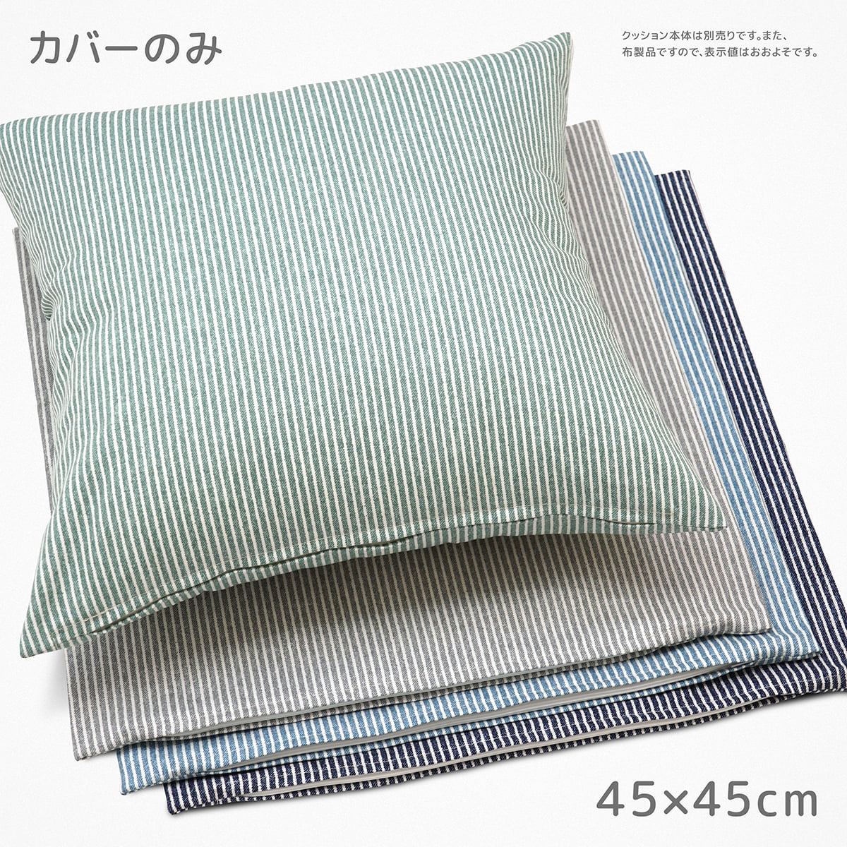 クッションカバー ヒッコリー調 ストライプ 約45×45cm 綿100% 日本製 ロギー ファスナー開閉式 オックス OX プリント 背あて 背当て セアテ 45角