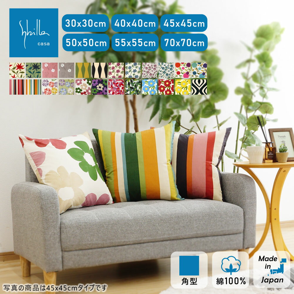 クッションカバー 30×30cm 40×40cm 45×45cm 50×50cm 55×55cm 70×70cm Sybilla シビラ プリントタイプ 送料無料 クッションケース 綿100% コットン100% スクエア 角型 四角 新生活 贈り物 プレゼント ギフト【受注生産品】