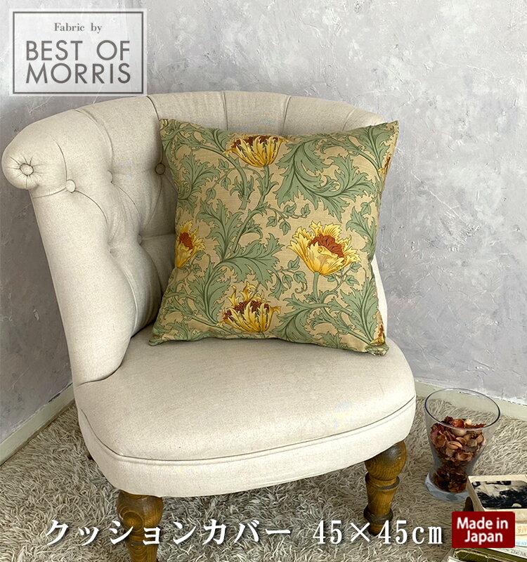 【メール便対応可】【Fabric by BEST OF MORRIS】【日本製】クッションカバー 角型 45×45cm モリスデザイン アネモネ グリーン ファブリック バイ ベスト オブ モリス ウィリアム・モリス 綿100% おしゃれ ギフト 在宅ワーク 在宅勤務 テレワーク リモートワーク