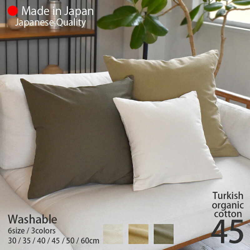 クッションカバー 45×45 オーガニック 綿100% [ 日本製 ] 「全3色」 素肌に触れる心地よさ 北欧スタイル おしゃれ 肌触りの良いサテン生地 ナチュラルカラー / 45cm [ ゆうパケット 送料無料 ] sdgs