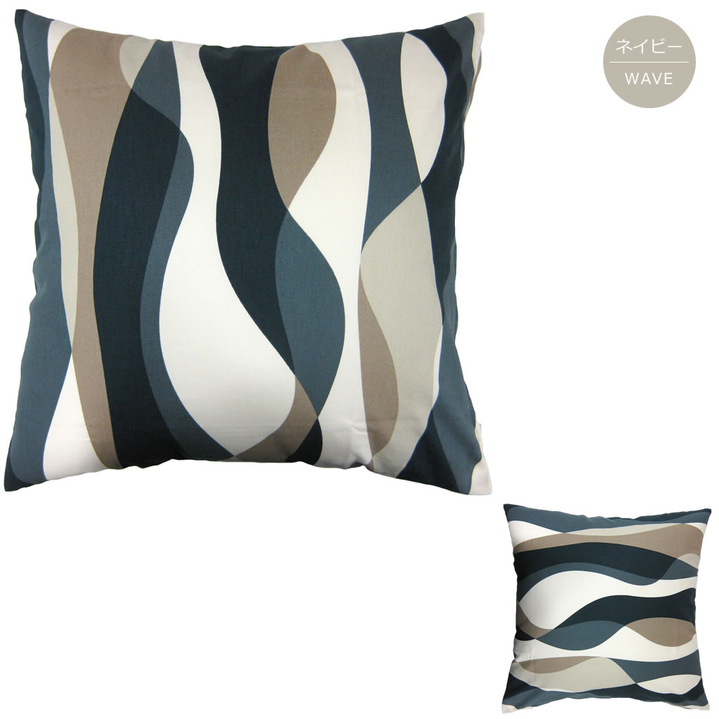 クッションカバー 45×45 [ 日本製 ] 北欧 綿100% おしゃれ ウェーブ柄 オックスフォードの張りのある生地 綺麗なカラーリング 張り感と手触りが良く丈夫な中厚生地 シンプル / 45×45cm [ ゆうパケット送料160円 ]