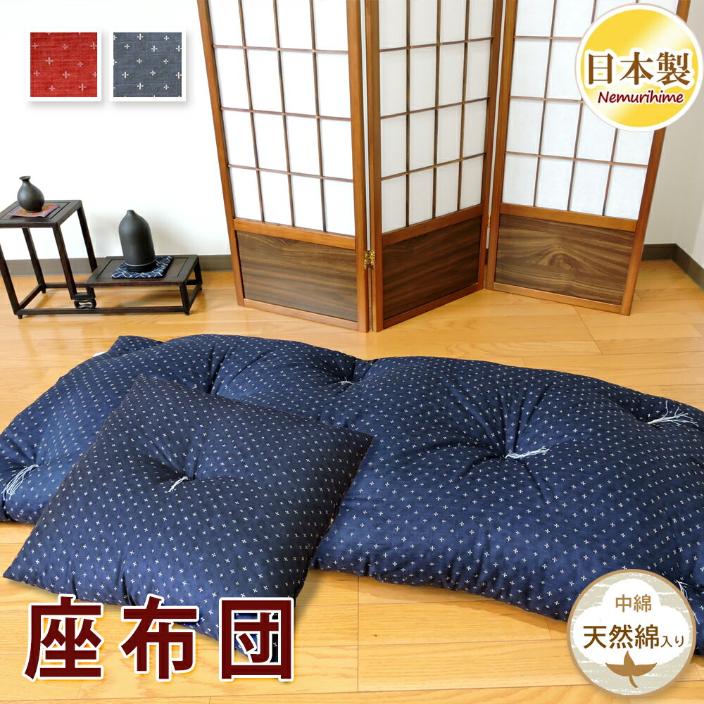 商品の特徴 丈夫な綿100%ドビー織生地を使用しています。 ドビー織生地に施された和の総柄が、和洋どちらの部屋にもマッチします。 中綿は、良質の米綿にポリエステルを混ぜています。 昔ながらの和とじされた座布団で、座り心地がよいです。 いろいろなサイズが3タイプあります。 縫製、加工を眠り姫で行っています。 スペック 生地 綿100%(ドビー織) 中綿 綿 50%・ポリエステル 50% 展開サイズ綿量銘仙判約55×59cm/約0.8kg 大判約70×74cm/約1.3kg ごろ寝約60×140cm/約1.9kg 生産国 日本製(眠り姫で加工) お手入れについて コインランドリーでの洗濯はお避け下さい。専門の業者での洗濯をおすすめしています。 ご確認ください 以下の理由による返品はご遠慮ください。・生地巾の都合上、150cm以上の商品につきましては、生地をつなぎあわせて加工しています。つなぎ目については、柄あわせは行っていません。・モニターによって色の見え方が違います。 モニターと色が異なる理由での返品は承る事ができません。・生地表面に黒い小さい点がある場合がございます。 仕様しております素材本来の物であり汚れではございません。・生地表面上に凸凹がある場合がございますが、糸の太さの微細な違いがある為に生じる凸凹となります。・色、素材の確認をご希望の方はカット生地(小)を送らせていただきます。 ご連絡ください※北海道、沖縄、離島に関してましては、別途追加送料をいただいています。 ご注文確認後、追加送料をご連絡させていただきます。