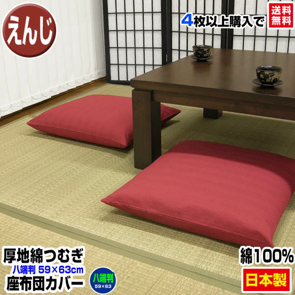 【あす楽】【ネコポス対応】 座布団カバー 八端判 59×63cm 座布団用厚地綿つむぎ 座布団カバー4枚から 送料無料綿100% えんじ自社工場製造 希望サイズ生産可能業務用 座布団 カバーザブトンカバー ざぶとんカバー【★★】