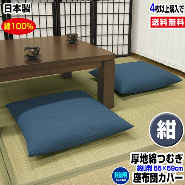 【あす楽】【ネコポス対応】 座布団カバー 銘仙判 55×59cm 座布団用厚地綿つむぎ 座布団カバー4枚から 送料無料綿100% 紺自社工場製造 希望サイズ生産可能業務用 座布団 カバーザブトンカバー ざぶとんカバー【★★】