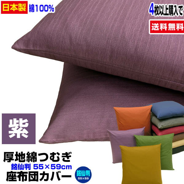 【あす楽】【ネコポス対応】 座布団カバー 銘仙判 55×59cm 座布団用厚地綿つむぎ 座布団カバー4枚から 送料無料綿100% 紫自社工場製造 希望サイズ生産可能業務用 座布団 カバーザブトンカバー ざぶとんカバー【★★】