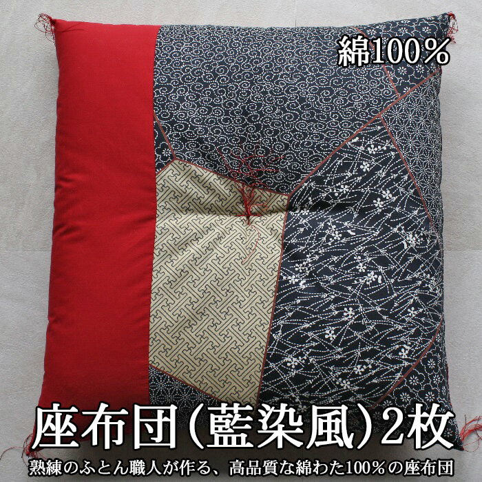 【ふるさと納税】座布団 綿100% 藍染風 2枚/綿 わた ふかふか 日本製 プレゼント 奈良