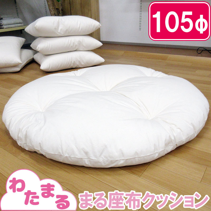 【わたまる】まるわた座布クッション 105cm 円形 プレイマット せんべい 座布団 丸 まる クッション ラウンド インテリア 日本製 綿100% 和綴じ おしりに優しい 布団綿 職人手作り 大人も使える座布団