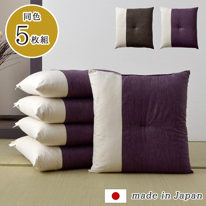 【先着5名★25%offクーポン★12/4 20:00-20:59】 座布団 5枚組 セット 日本製 「 リーネ 銘仙判座布団 5枚組 」 約55×59cm ブラウン パープル 座布団 おしゃれ クッション 和風 和室 来客 モダン 国産 綿100% ざぶとん まとめ買い 盆 正月 法事 和座布団