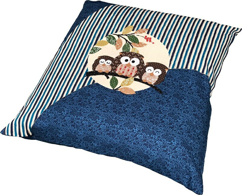 1枚 組 座布団カバー 55 59 ふくろう ブルー 約55×59cm 送料無料 日本製 綿100% 銘仙判 旅館 業務用 居酒屋 公民館 和室 洋室 和風 洋風 北欧 綿 お買い得 洗える おしゃれ かわいい コットン カジュアル ファスナー フロアクッションカバー オールシーズン 55x59