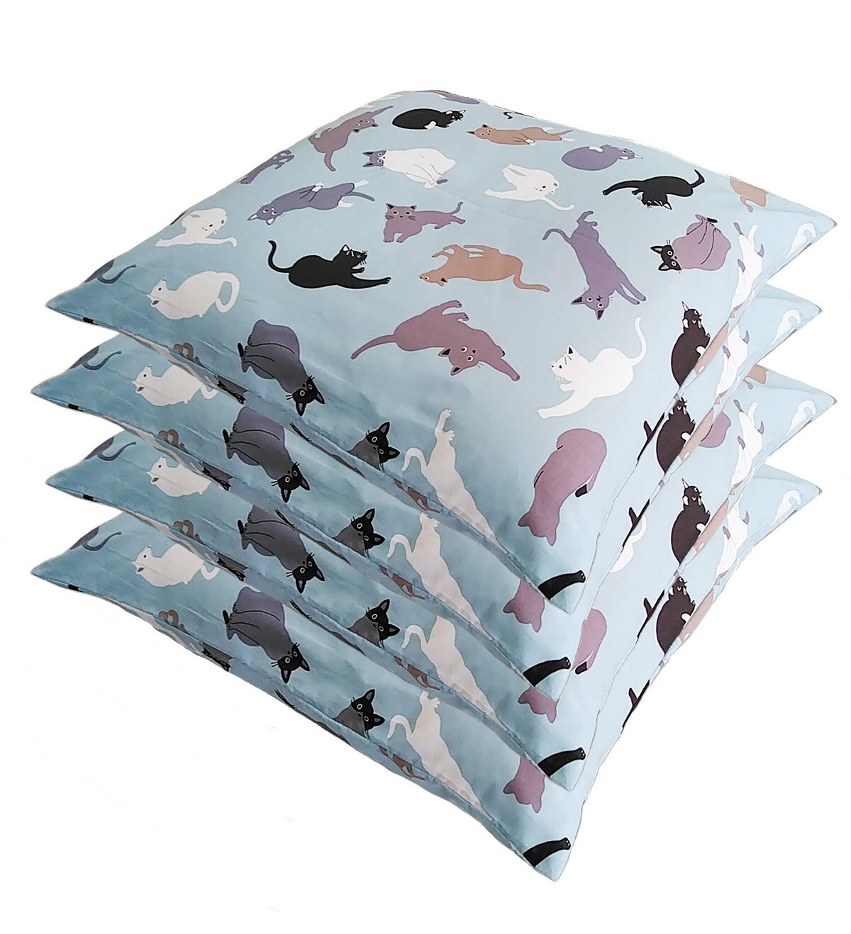 4枚 組 座布団カバー ネコ 55 59 ブルー 約55×59cm 送料無料 日本製 綿100% 銘仙判 安心 旅館 業務用 居酒屋 公民館 和室 洋室 和風 洋風 綿 お買い得 洗える おしゃれ かわいい コットン カジュアル ファスナー フロアークッションカバー オールシーズン 55x59