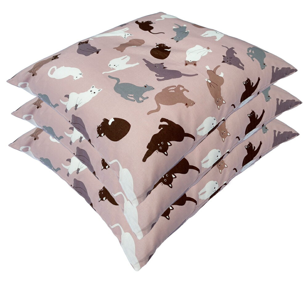 3枚 組 座布団カバー ネコ 55 59 ピンク 約55×59cm 送料無料 日本製 綿100% 銘仙判 旅館 業務用 居酒屋 公民館 和室 洋室 和風 洋風 法事 綿 お買い得 洗える おしゃれ かわいい コットン カジュアル ファスナー フロアークッションカバー オールシーズン 55x59