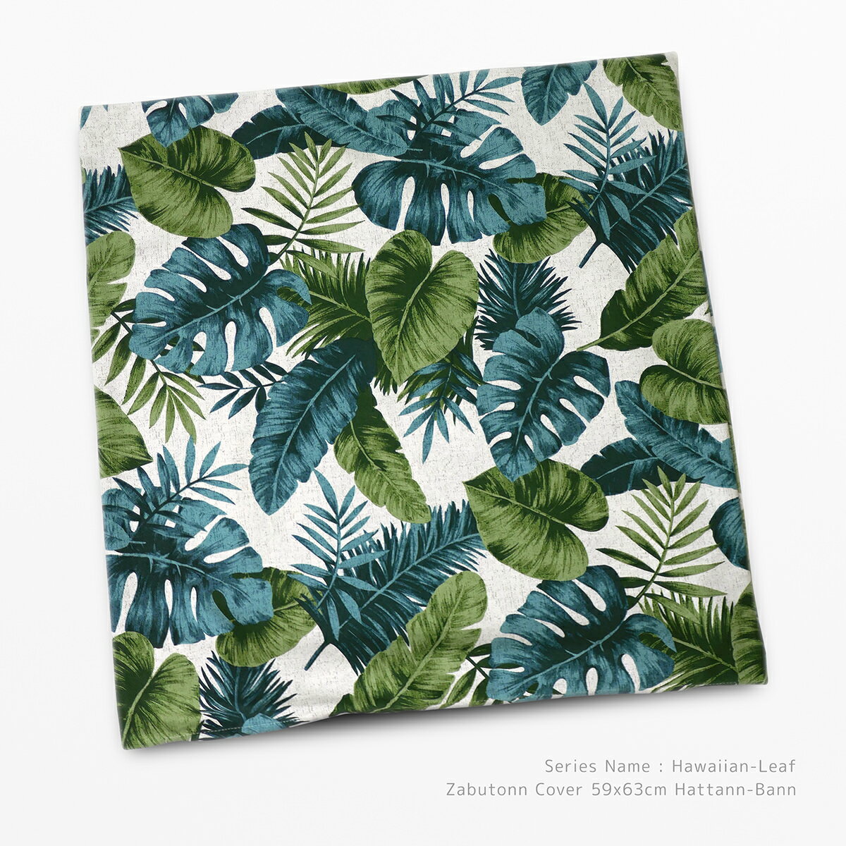 座布団カバー 約59×63cm 八端判 ハワイアンリーフ 綿100% ナチュラル 植物 葉柄 ボタニカル 自然 南国リゾート風 素縫い 両面共生地 ファスナー 日本製 ざぶとん ザブトン 座ぶとん 座蒲団