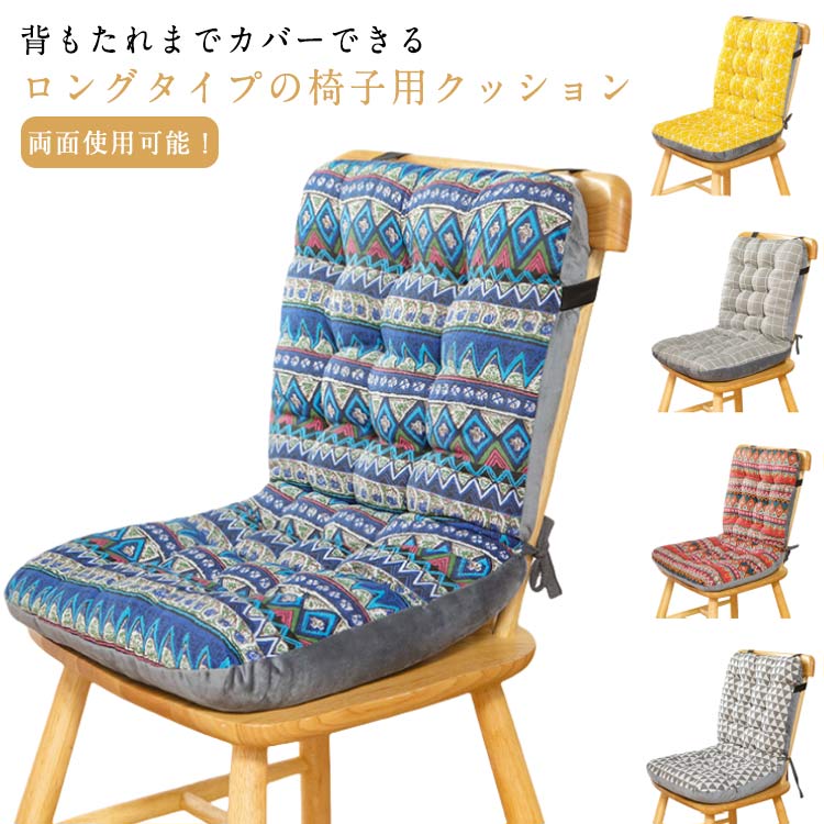 椅子クッション ロングタイプ チェアパッド シート 背もたれ付きクッション エスニック風 おしゃれ ふかふか 快適 椅子 イス用クッション ロング チェアクッション オールシーズン 腰痛対策 秋 両面使用可能 座布団 冬 春 夏 テレワーク オフィス 車内用 クッション 送料無料