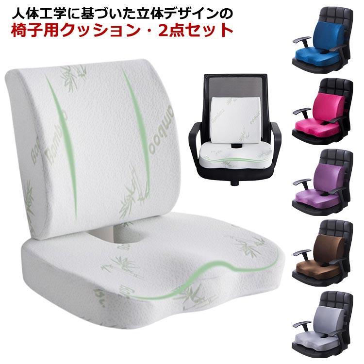 2点セット 椅子用 背もたれ 座布団 オフィス クッション 腰痛対策 低反発 シートクッション 骨盤クッション ゆがみ 矯正 グッズ 疲れない いす用