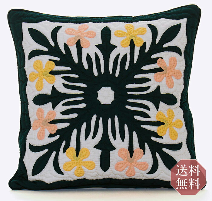 ハワイアンキルトクッションカバー ハワイアンキルト 手縫い クッションカバー ハワイアン ハワイ 【 プルメリア グリーン 45X45cm】 ハワイアン 雑貨 インテリア