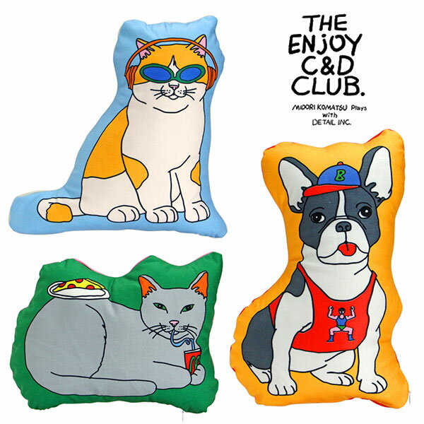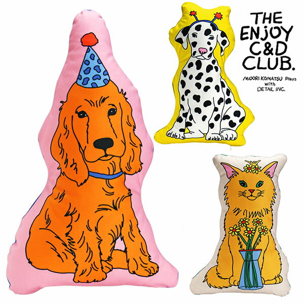 THE ENJOY C&D CLUB エンジョイ シーアンドディー クラブ クッション キャット ドッグ 犬 猫 いぬ ねこ イラストレーター midori komatsu plays with detail inc かわいい カラフル おしゃれ ぬいぐるみ 車 リビング ギフト 縫いぐるみ プレゼント 贈り物 洗える 洗濯