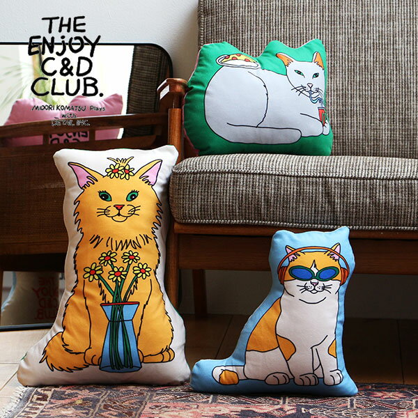 【ポイント10倍】3種セット The Enjoy C&D Club Cushion エンジョイ C&D クラブ クッション Cat/Green Cat/Blue Cat/Beige ダイカットクッション クッション モチーフ 猫 ネコ ねこ イラスト MIDORI KOMATSU Plays with DETAIL INC.【送料無料】【p1022】