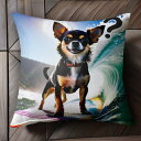 サーフィン チワワ 海 波乗り 楽しい 犬のスポーツ クッションカバー 45×45cm アニマル柄 おしゃれ 可愛い クッション本体付き 正方形 犬ファン
