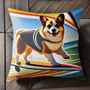 サーフィン コーギー 海 波 スポーツ 楽しい クッションカバー 45×45cm アニマル柄 おしゃれ 可愛い クッション本体付き 正方形 犬ファン