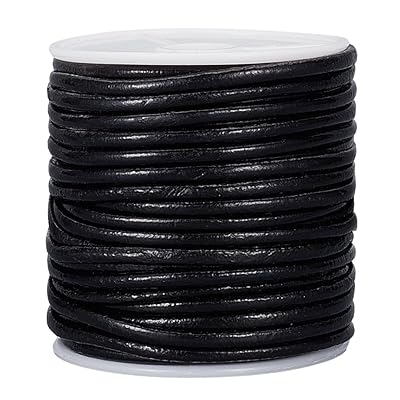 OLYCRAFT 20m 牛革紐 本革ひも レザーコード 革ひも 紐 皮紐 丸紐 太さ3mm アクセサリーパーツ ネックレス ブレスレット 靴ひも 手作り用品 DIY用 ジュエリーコード-黒