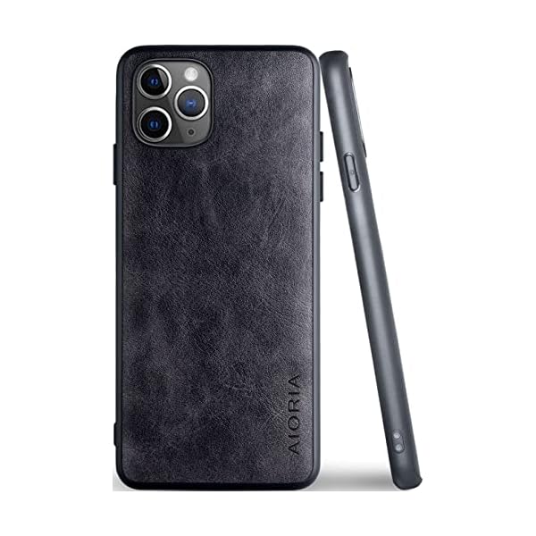iPhone 11 Pro ケース 5.8" 高級な牛革柄レザースキンソフトとハードの混合素材の電話ケース (iPhone 11 Pro, 黒)
