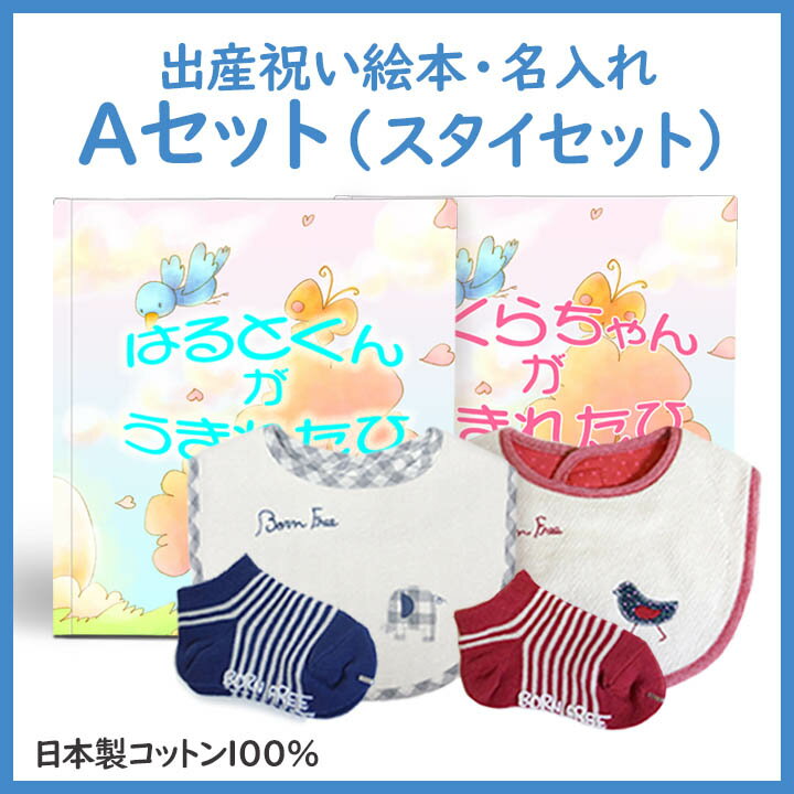 名入れ絵本 『出産祝い絵本』スタイ 靴下セット オーガニックコットン100% 名入れ絵本 出産祝い 手型 足型 身長 体重 成長記録 かぶらないお祝い メッセージブック ギフトブック 出産祝いベストセラー 出産祝い ベビー 誕生 爆誕 生まれてくれてありがとう 出産祝いセット