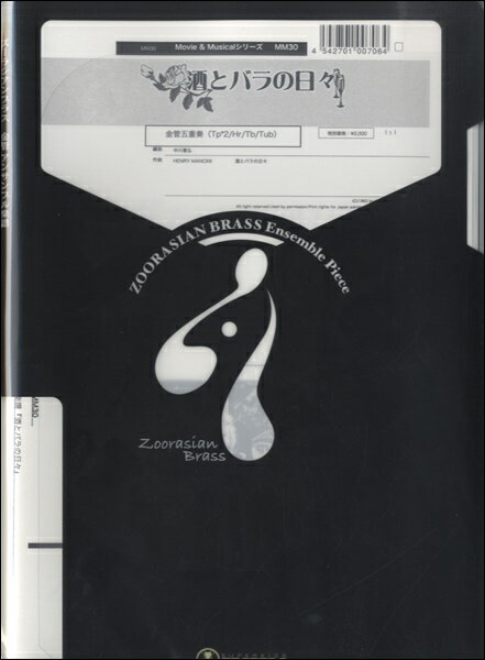 楽譜 【取寄品】【取寄時、納期1週間〜10日】ズーラシアンブラスシリーズ 楽譜『酒とバラの日々』金管五重奏【メール便を選択の場合送料無料】