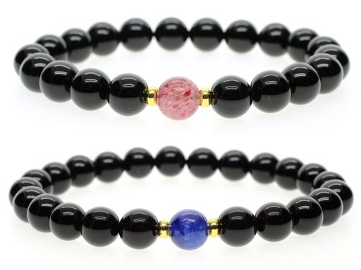 [コアイ]ストロベリークォーツカイヤナイトオニキス恋愛成就開運パワーストーンペアブレスレットカップルサイズメンズレディース