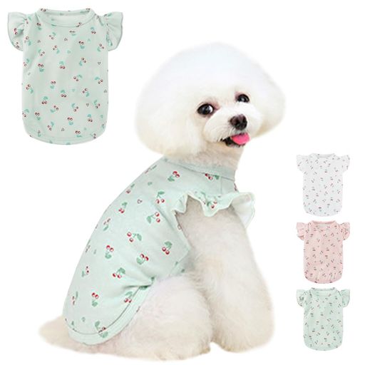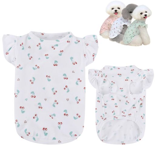 AmzBarley犬服春シャツ可愛いさくらんぼ柄フリル袖ラウンドネック犬服洋服小型犬中型犬服春夏柔らかい通気性伸縮性軽量ペット服抜け毛防止户外防虫犬春服両足おしゃれ家着お散歩お出かけ
