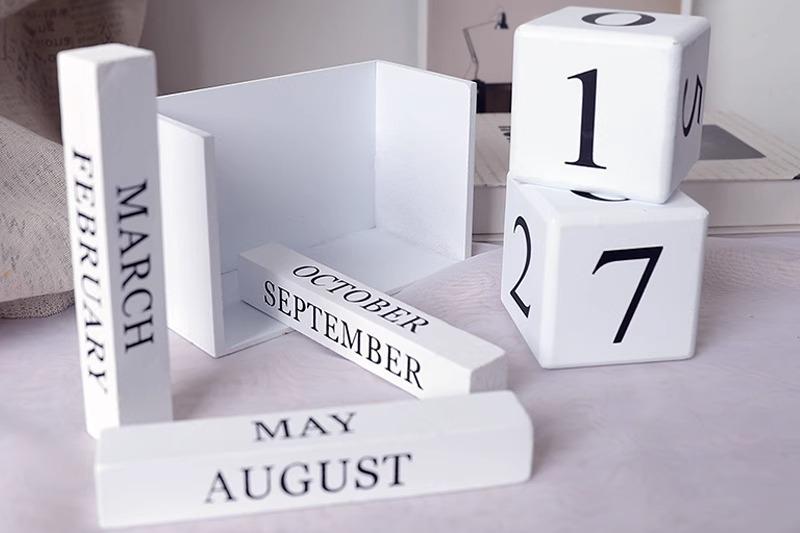 ブロックカレンダー 卓上 おしゃれ プレゼント 木製 万年 クリエイティブ デコレーション 置物 飾り リビング 書斎 シンプル モダン アイボリー インテリア