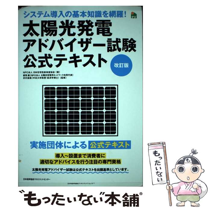 【中古】 太陽光発電アドバイザー試験公式テキスト 実施団体による公式テキスト 改訂版 / NPO法人日本住宅性能検査協会, 都筑 健 / [単行本]【メール便送料無料】【最短翌日配達対応】