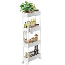SIUSA キッチンワゴン キャスター付き ワゴン 隙間収納 スリム 収納カート キッチン 洗面所 収納 13.5cm 18cm 22cm 冷蔵庫横 台所 浴室 トイレ 細い棚 3段 4段 おしゃれ 組立簡単 フック&収納カップ付き (4段式-[18