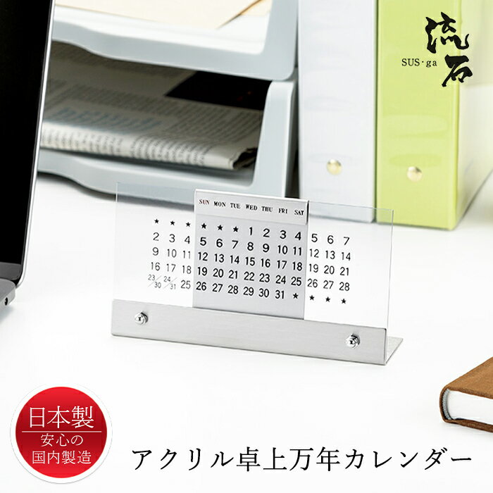 [10%OFF!楽天スーパーSALE 12/4 20:00〜12/11 1:59] 卓上カレンダー アクリル ステンレス おしゃれ 万年カレンダー 日本製