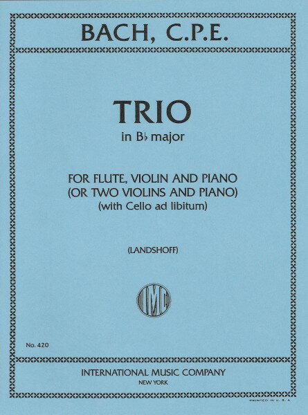楽譜 【取寄品】【取寄時、納期1週間〜10日】輸入 三重奏曲 変ロ長調 (トリオ・ソナタ H. 578 Wq. 161−2) Trio in Bb Major (Flute(Violin)/Violin/Piano) /Carl Philipp Emanuel Bach【沖縄・離島以外送料無料】