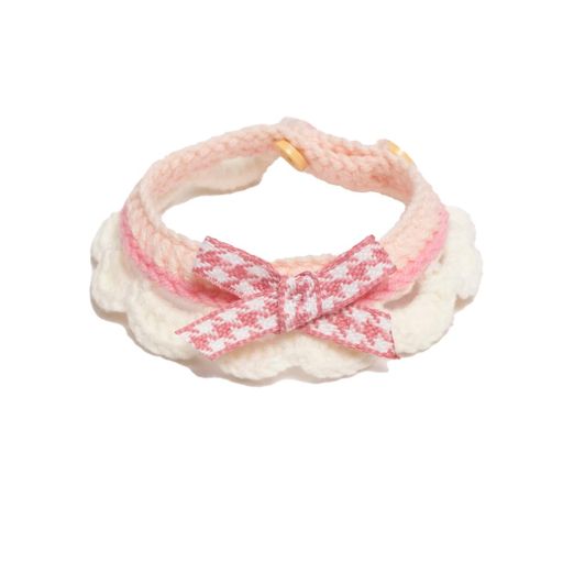 Wag&Winkペット首輪犬猫可愛い調節可能バンダナよだれかけ日系INS風千鳥格蝶結びレース綿S/M/Lサイズ日常おしゃれプレゼント軽量安全多機能(千鳥格ピンクS)