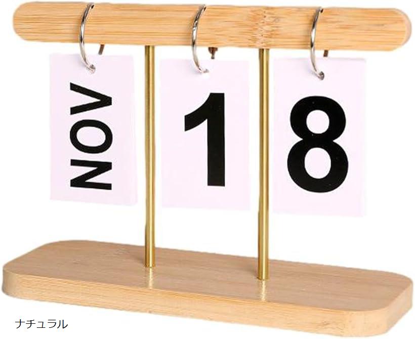 万年カレンダー 木製 卓上 日めくり おしゃれ ずっと使える ウッド インテリア ゴールド 装飾 飾り オフィス ホーム レストラン 喫茶店 カフェ(ナチュラル)