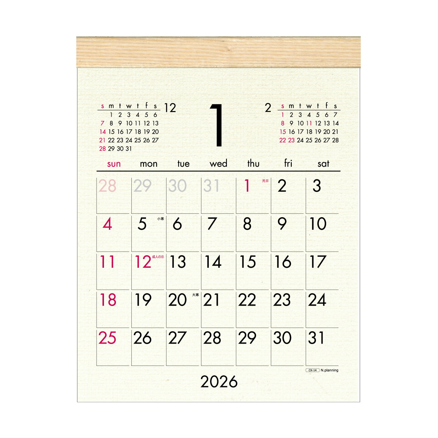 2026年 壁掛カレンダー1月始まり ウッディコットンSCK-14