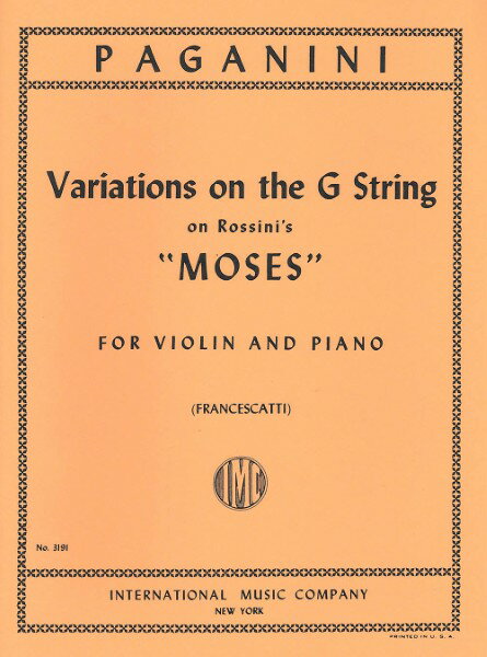 楽譜 【取寄品】【取寄時、納期1週間〜10日】輸入 バイオリンソロ ロッシーニの「モーゼ」の主題によるG線上の変奏曲 (Violin & Piano) Variations on the G String (on a Theme from Moses /Niccolo Paganini【メール便を選択の場合送料無料】