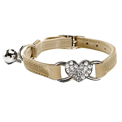 WDPAWS 猫 首輪 猫の首輪 子猫 キラキラ クリスタル 首輪 犬 かわいい ハート 犬の首輪 5穴 調節可能 (カーキ)