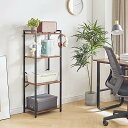 YMYNY本棚 4層収納ラック プラントラック スチールフレーム付き収納ラック リビングルーム オフィス 書斎 廊下 インダストリアルスタイル 素朴な茶色と黒 JPHBC004H