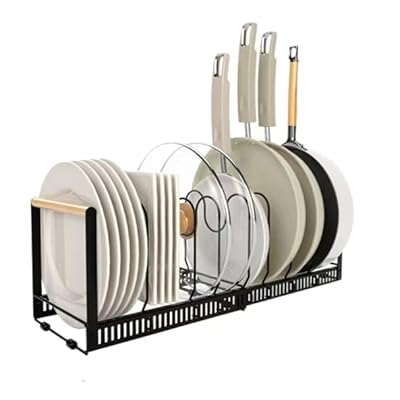 shdye 伸縮式フライパンラック キッチンポット収納ラック ポットラック ディッシュラック まな板 鍋 鍋蓋ラック キッチン収納ラック フライパン収納 7つの仕切り付き (ブラック)