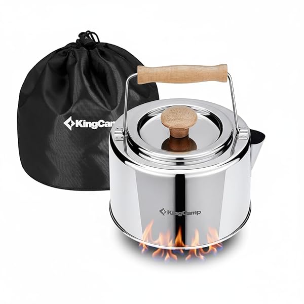 KingCamp キャンプ ケトル 1.2L ステンレス製 ソロキャンプ/2人用 直火対応 小型 軽量 コンパクト 茶こし付き 竹製ハンドル SUS304製 登山 焚き火 調理 ポット アウトドア用品 コンパクト収納 キャンプ用品