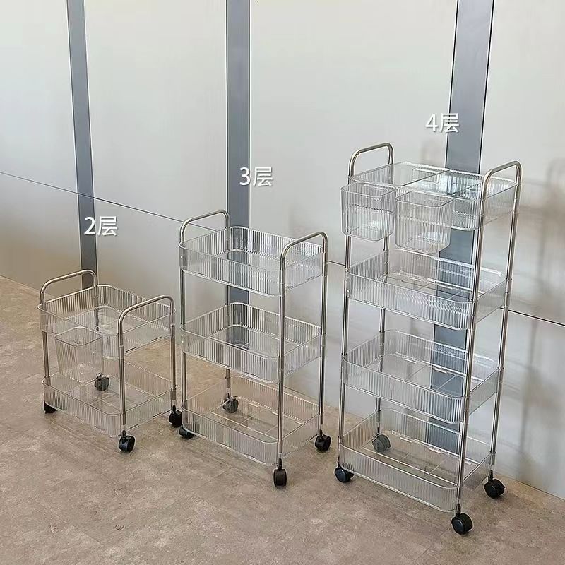 送料無料 ワゴン キャスター付き 透明 モバイルマルチレイヤー トロリー収納ラック トロリー 洗面所 寝室 ワゴン収納 化粧品収納ラック スナック収納ラック
