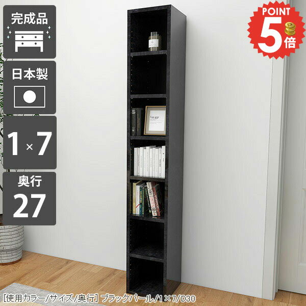 H-001 1×7/奥行27 BP本棚 省スペース すきま収納 カラーボックスサイズ約幅260 奥行き270 高さ1810 mm材質[本体]メラミン樹脂化粧合板[背板]プリント化粧合板カラーブラックパール※モニターなどの閲覧環境によって、実際の色と異なって見える場合がございます。重量約17kg仕様日本製完成品棚板耐荷重:10kg棚板の厚み:20mm可動棚板5枚連結金具、転倒防止金具付き背面プリント化粧仕上げ(一部タッカー留め/メラミン素材ではありません)※H-001シリーズ5段〜7段は左右に連結できる仕様です。2〜4段は連結不可となります。※H-001木目・パステルカラーとはサイズが異なるため連結できません。ブランド 送料送料無料※北海道・沖縄・離島は送料別途お見積もり。納期ご注文状況により納期に変動がございます。最新の納期情報はカラー選択時にご確認ください。※オーダー商品につき、ご注文のキャンセル・変更につきましてはお届け前でありましても生産手配が済んでいるためキャンセル料(商品代金の50%)を頂戴いたします。※商品到着までの日数は、地域により異なりますご購入時にお届け日の指定がない場合、最短日での出荷手配を行いメールにてご連絡させていただきます。配送・開梱設置について※北海道・沖縄・離島は送料別途お見積もりいたしましてご連絡いたします。【ご注意ください】離島・郡部など一部配送不可地域がございます。配送不可地域の場合は、通常の配送便での玄関渡しとなります。運送業者の便の都合上、地域によってはご希望の日時指定がお受けできない場合がございます。建物の形態(エレベーターの無い3階以上など)によっては別途追加料金を頂戴する場合がございます。吊り上げ作業などが必要な場合につきましても追加料金はお客様ご負担です。サイズの確認不十分などの理由による返品・返金はお受けできません。※ご注文前に商品のサイズと、搬入経路の幅・高さ・戸口サイズなど充分にご確認願います。→ 詳しくはこちら備考※製造上の都合や商品の改良のため、予告なく仕様変更する場合がございますので予めご了承ください。当店オリジナル家具を全部見る管理番号0000a55061メーカー希望小売価格はメーカーカタログに基づいて掲載しています■おすすめラインナップこのページは H-001 1×7 奥行27cm BlackPearl のページです。 [使用カラー/サイズ/奥行] ブラックパール/1×7/D30機能性と美しさを兼ね備えた壁面収納均等に美しく配置された縦板と、可動式の棚板でどんなサイズも収納可能。本棚としての利用はもちろん、見せる収納としても最適なラックです。シンプルな造りに見えて、細かなこだわりがたくさんある収納家具になっています。[使用カラー/サイズ/奥行] ブラックパール/1×7/D27可動棚で収納の幅も広がる32mm間隔で調節が出来る可動棚がついているので、収納物に合わせて高さ調節したり、自由なレイアウトが楽しめます。棚の横幅が22cm間隔で分割されているため、棚の強度も十分です。(棚板1枚の耐荷重約10kg)[使用カラー/サイズ/奥行] 上:ホワイトウッド(メラミン)/7×4/D30、下:北欧チーク/3×6/D30 3点3サイズ展開の奥行でバリエーションがさらに豊富にA4サイズの書類がすっきり収まる27cm、本以外の収納にも使いやすい30cmや35cmの奥行も。それぞれのニーズに合ったラックが見つかるはずです。[使用カラー/サイズ/奥行] 左から:ホワイトウッド(メラミン)/1×5/D27、1×6/D30、1×7/D35お部屋に似合うカラーや素材を楽しむぬくもりのある木目調、カラフルなパステルカラー、鏡面が美しいメラミン素材など、様々なバリエーションをご用意しています。可愛らしい北欧やナチュラル、高級感のあるモダンなインテリアなど、お部屋にぴったり合うカラーや素材を楽しめます。 連結して使うことが出来る5段〜7段タイプのH-001であれば横に連結して使う事も可能。お部屋のサイズや収納したいものに合わせて拡張して、使いやすいサイズに。※2段〜4段タイプには連結穴はありません。※H-001木目・パステルカラーとはサイズが異なるため連結できません。1.連結用の穴を左右で合わせる2.付属の連結用ネジをドライバーとコインなどを使って締める3.ネジ隠しのキャップをはめる[使用カラー/サイズ/奥行] 左:ブラック/2×6/D30 2点、右:ブラック/3×6/D30 3点コーディネートシーンSCENE.1リビングの収納棚やデスクサイドの本棚にぴったりオープンタイプの収納ボックスは、収納家具だけでなく飾り棚としても活躍してくれます。お気に入りのインテリア雑貨をディスプレイして自分好みのお部屋に。勉強部屋や書斎では、デスク横に書棚を置くと簡単に資料や教科書を取ることが可能です。サイズオーダーが出来るので、デスクにぴったりの家具をオーダー出来ます。[使用カラー/サイズ/奥行] 上:ブラウン/2×7/D30、下:ネイル/5×3/D30SCENE.2キッチンの食器棚や小物を入れる玄関収納としてキッチン用品や食器を並べておける収納棚にも早変わり!テーブルの横に配置して収納をプラスすることも可能です。シュ