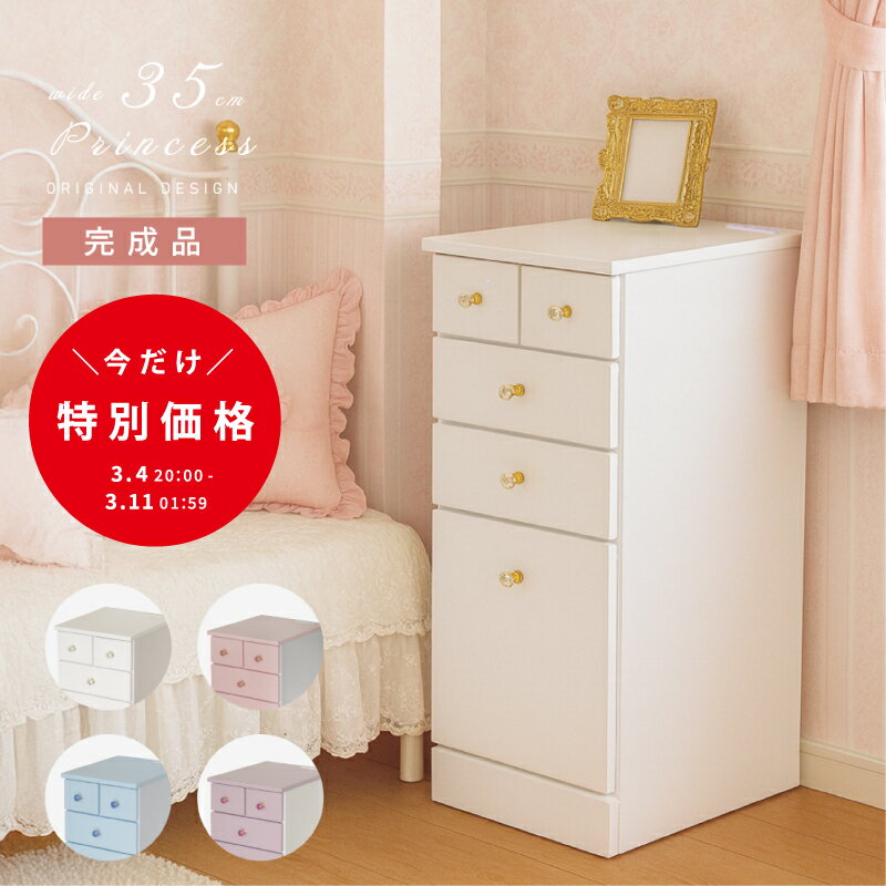 特別価格+5%クーポン!3/4~ 組立不要! 幅35cm 4段 コンセント付き スリム サイドチェスト 可愛い 完成品 姫系 クリスタル取っ手 かわいい おしゃれ 引き出し コンパクト 収納 サイドテーブル 白 ホワイト ピンク ブルー 青 水色 パープル プレゼント 寝室 リビング