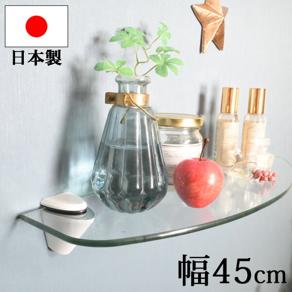 『 強化ガラス ウォールシェルフ幅45cm D型』壁掛け 棚 飾り棚 壁 壁付け おしゃれ ガラス棚 ガラスシェルフ シンプル モダン 店舗 陳列 什器 ディスプレイ 業務用 洗面所 浴室 クリップ式 家具 壁面収納 インテリア リビング トイレ 玄関 長い ロング 幅広 高級感 日本製