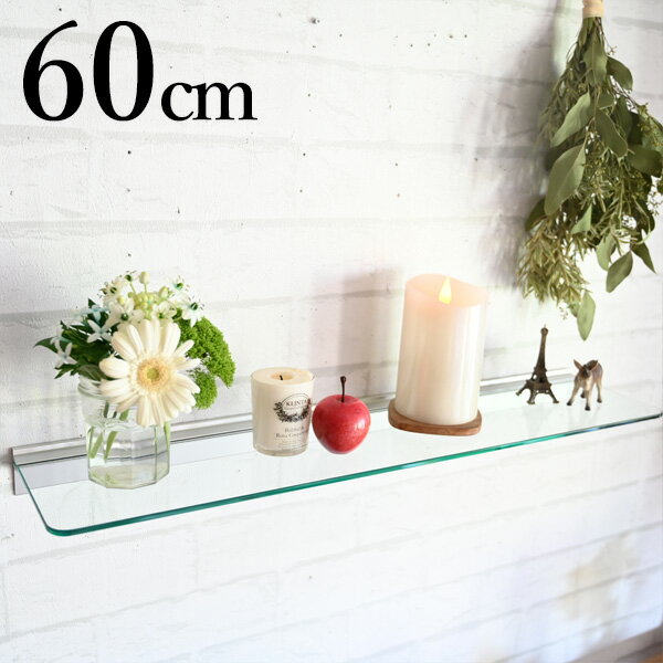 『 強化ガラス ウォールシェルフ幅60cm x 14cm 』壁掛け 棚 飾り棚 壁 壁付け おしゃれ ガラス棚 ガラスシェルフ シンプル モダン 店舗 陳列 什器 ディスプレイ 業務用 洗面所 浴室 壁面収納 インテリア リビング トイレ 玄関 長い ロング 幅広 ワイド 石膏ボード 高級感 qho
