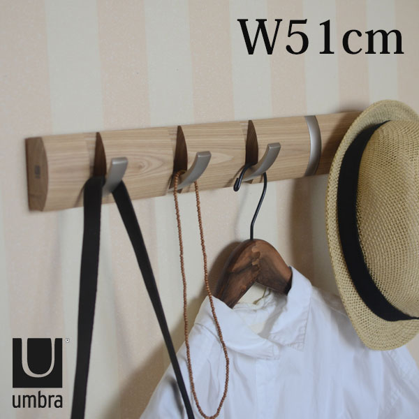 『壁掛けフック FLIP5フック』木製 壁付け おしゃれ 折りたたみ 家具 レトロ ナチュラル 玄関 リード フック リード掛け ハンガーフック ウォールフック 洋服掛け 帽子掛け カバン 収納 インテリア 石膏ボード 長い 幅広 ワイド ロング フリップフック 高級 umbra アンブラ